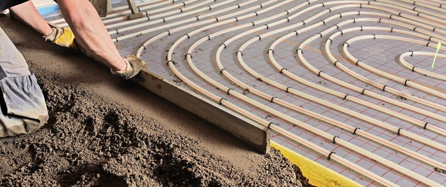Der Heizestrich ist ein fester Unterboden, den man in Zusammenhang mit einer Fußbodenheizung verwendet. Er wird schwimmend auf einer Dämmschicht verlegt und hat keine feste Verbindung zum übrigen Baukörper. Im Gegensatz zu herkömmlichen Betonböden dient der Heizestrich nicht nur als Lastverteilschicht, sondern auch als Wärmespeicher der Flächenheizung. Im Folgenden erklären wir, aus welchen Bestandteilen der Estrich besteht und was bei der Verlegung zu beachten ist.